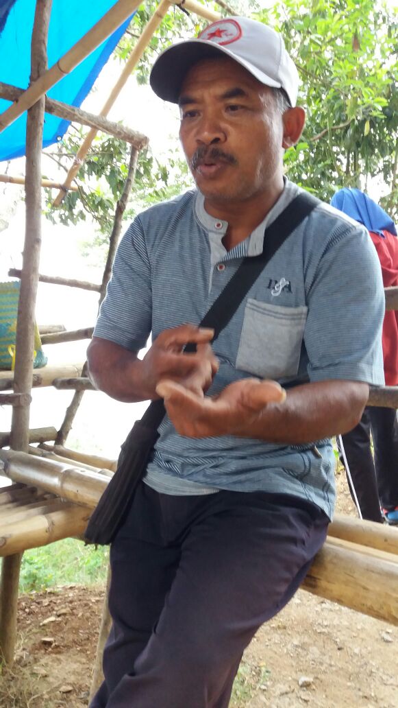 sambil menunjuk ke pengumuman di depan palang masuk lokasi wisata.
