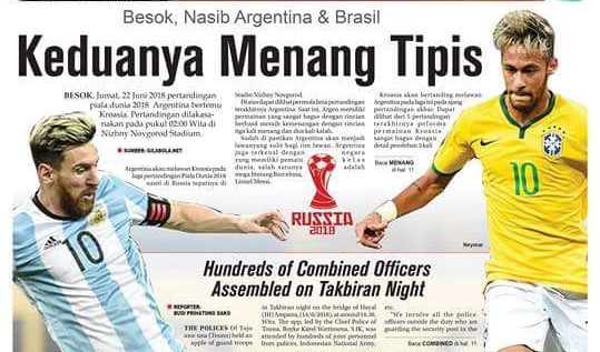 Jumat, 22 Juni 2018 pertandingan piala dunia 2018 Argentina bertemu Kroasia. Pertandingan