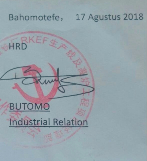 Arit PT Wanxiang Indonesia – dan tandatangan HRD Butomo (Industrial Relation)