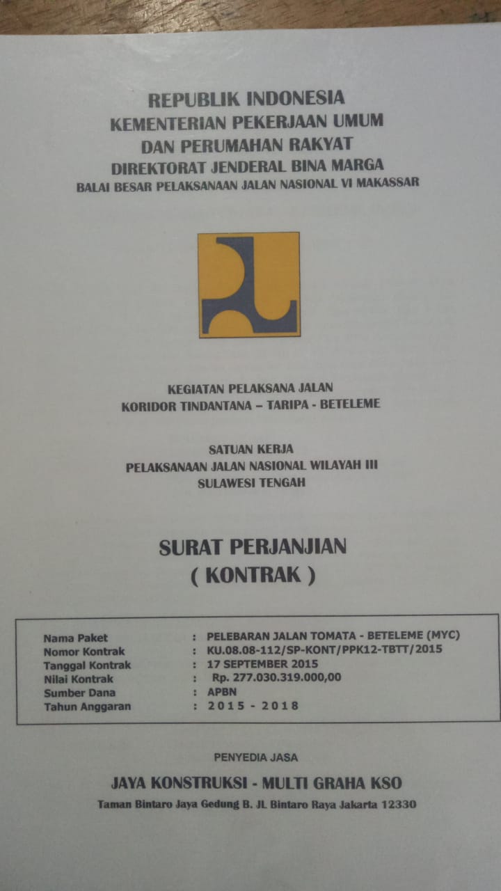 Paket Tomata Beteleme MYC dikerjakan oleh PT. Jaya Konstruksi Multi Graha KSO. Masa pelaksanaan 1080 hari. Kontrak tgl 17 September 2015 sd 08 September 2018. Telah dilakukan serah terima pertama (PHO) pada tgl 09/9/2018. Pekerjaan Jalan Tomata Beteleme tsb. Terdiri dari 2 segmen. segmen 1 = 21,6 km dari desa Ensa sampai Morowali Utara. Dan Segmen 2. = 5 Km Di kota Beteleme Kabupaten Morowali Utara. Total panjang penanganan 26,6 Km.