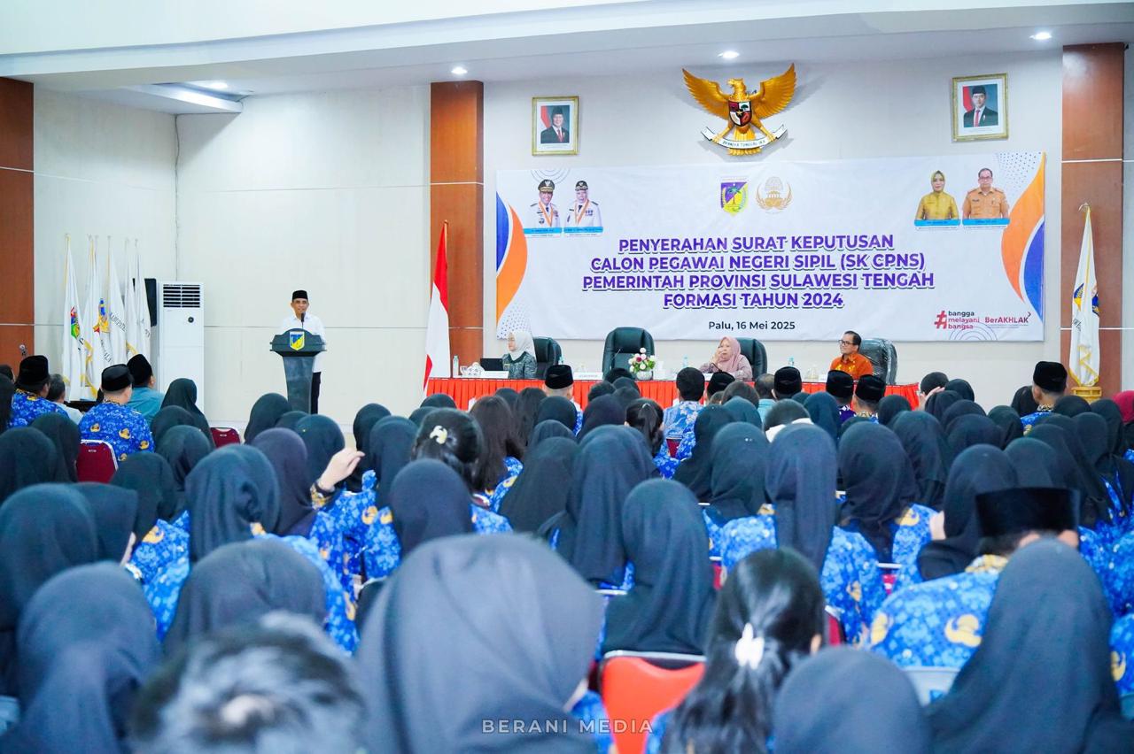 Acara tersebut turut dihadiri Wakil Gubernur dr. Reny A. Lamadjido, Sp.PK, M.Kes, Sekretaris Daerah Provinsi Dra. Novalina, M.M, Plt Kepala Badan Kepegawaian Daerah (BKD) Adiman, S.H, M.Si, serta sejumlah kepala perangkat daerah penerima formasi CPNS tahun 2024. **