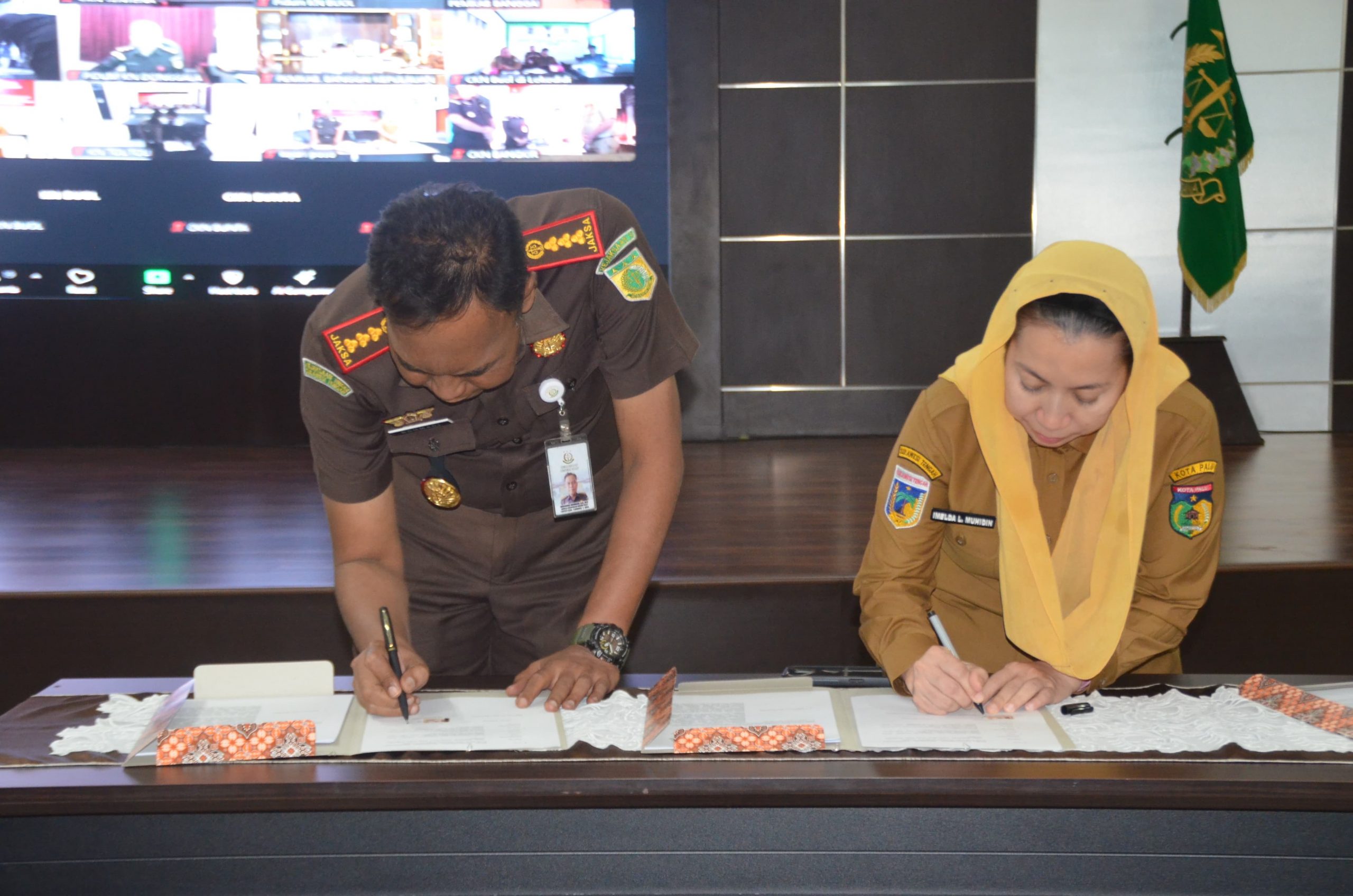 Penandatanganan Pemkot Wakil Wali Kota Palu, Imelda Liliana Muhidin bersama Kepala Kejaksaan Negeri Palu, Mohamad Rohmadi, SH., MH, di Kantor Kejaksaan Tinggi Sulawesi Tengah.