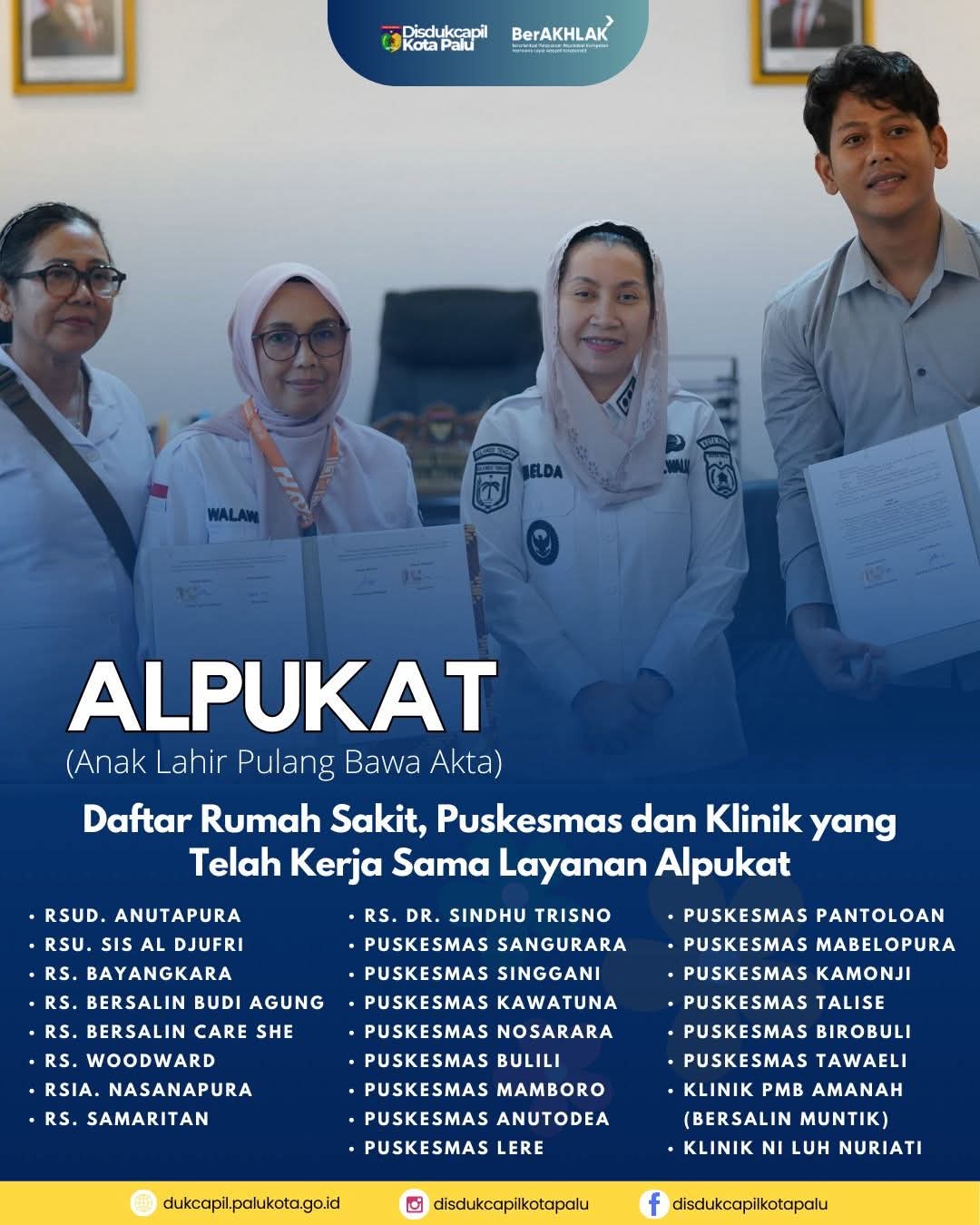 Dengan ALPUKAT, diharapkan warga Kota Palu yang melahirkan tidak lagi kesulitan identitas bayi. Demikian keterangan dari Pemkot Palu. ***
