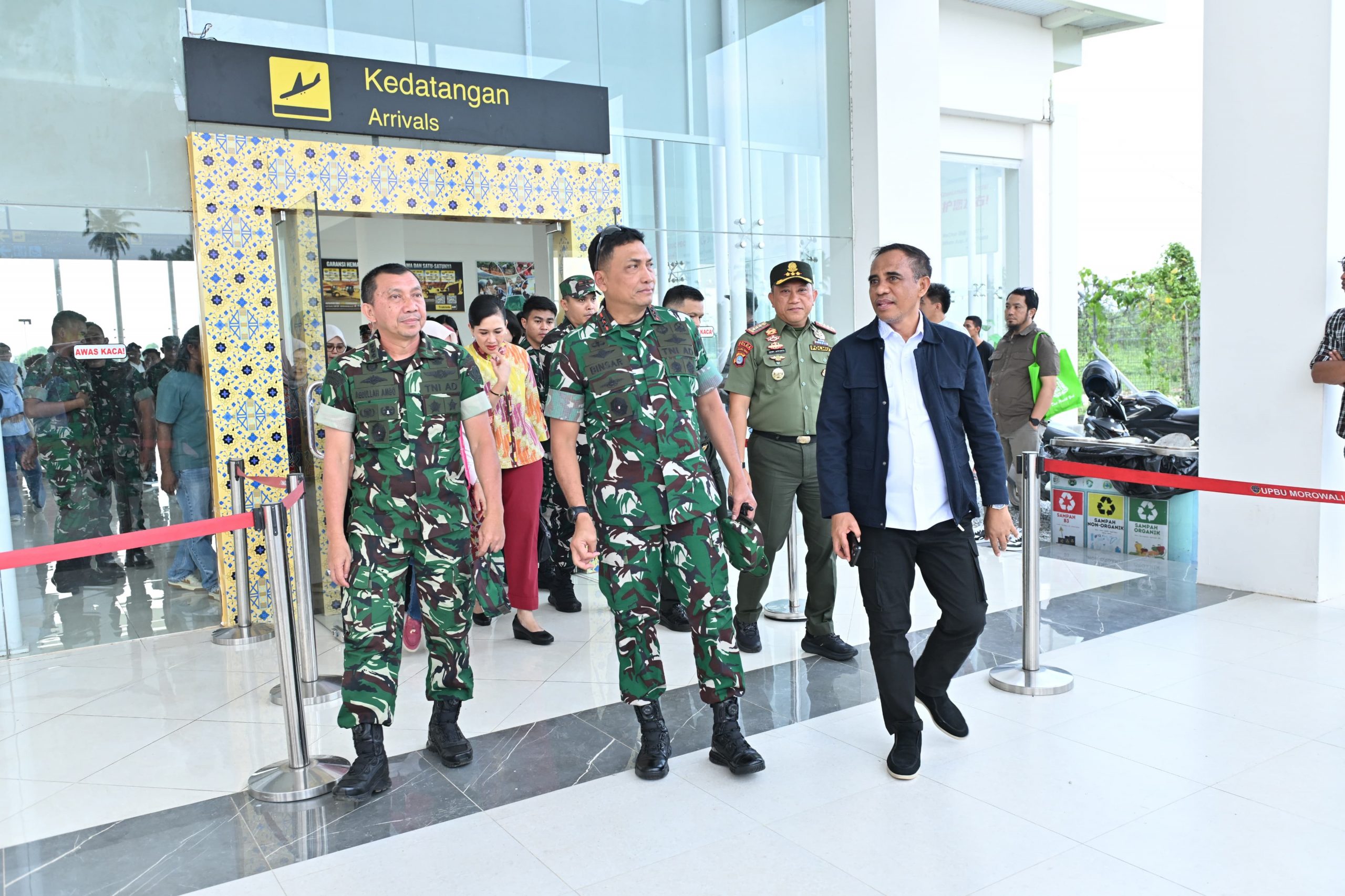 SULTENG – Gubernur Sulawesi Tengah Anwar Hafid dan Panglima Komando Daerah Militer (Pangdam) XXIII/Palaka Wira, Mayjen TNI Jonathan Binsar Parluhutan Sianipar, tiba di Bandara Maleo, Kabupaten Morowali, Rabu sore (22/10/2025) kemarin.