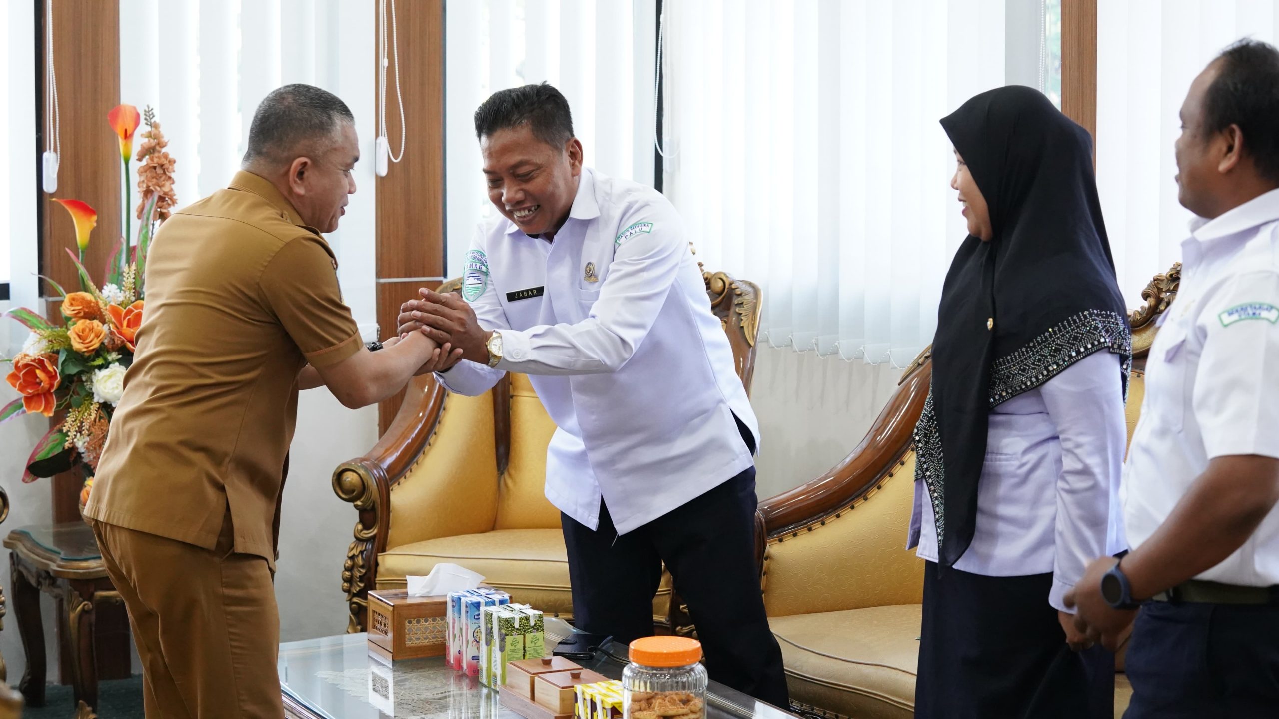 Sujabar dan stafnya bertemu dengan Wali Kota Palu Hadianto Rasyid menyampaikan laporan terkait perangkat monitoring gempa bumi dan tsunami yang telah terpasang di wilayah Kota Palu, seperti shelter InaTEWS, intensitymeter, tsunami gauge, dan warning receiver system new generation (WRSNG).