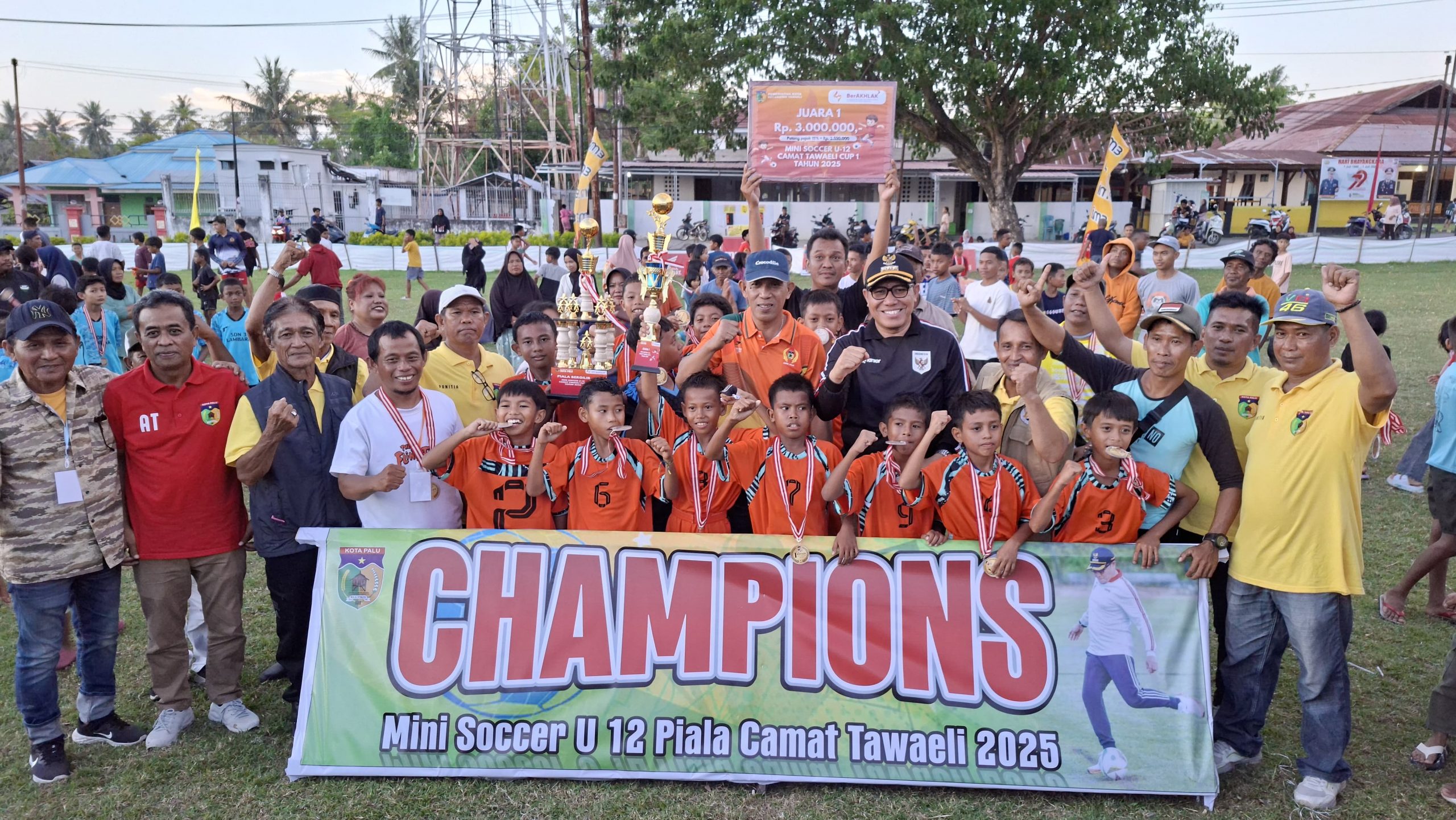 TAWAELI – SPUT Junior Tawaeli ‘Champions’ atau Juara Pertama di Kompetisi Mini Soccer U-12 se-Kecamatan Tawaeli, pada Minggu (12/10/2025) di Lapangan SPUT/Lumbuna Panau, Kota Palu.