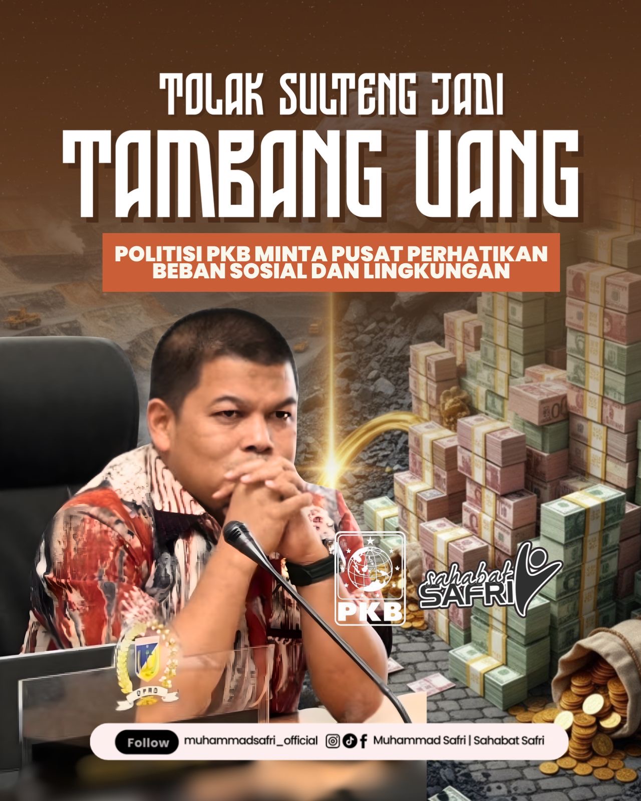 Safri mengingatkan pemerintah pusat agar tidak hanya memandang Sulteng sebagai lumbung sumber daya alam, tanpa mempertimbangkan dampak sosial dan lingkungan yang ditanggung oleh masyarakat setempat.