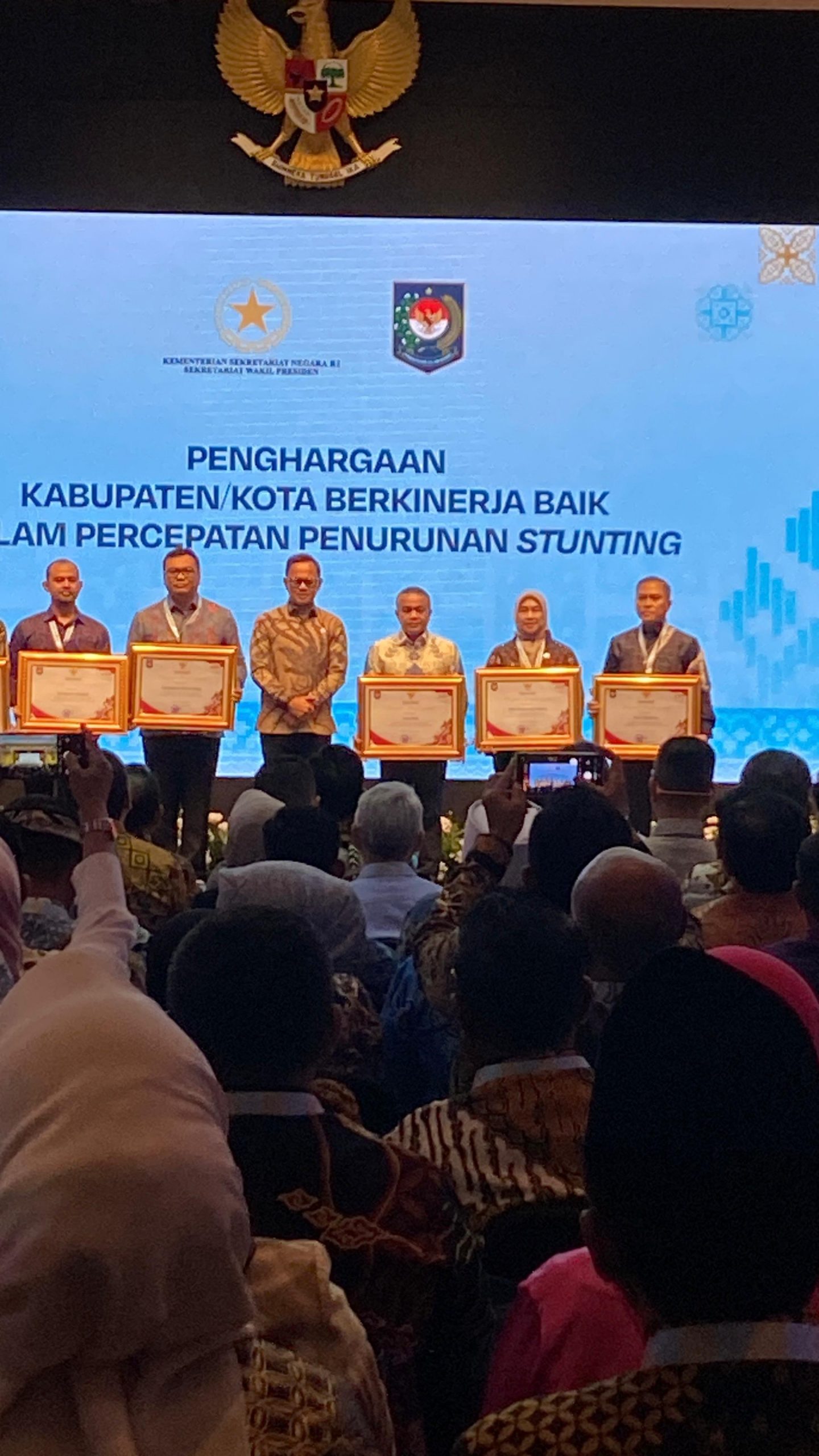 Penghargaan diserahkan langsung Wakil Menteri Dalam Negeri, Bima Arya, kepada Wali Kota Palu, H. Hadianto Rasyid, di sela-sela pelaksanaan Rapat Koordinasi Nasional (Rakornas) Percepatan Penurunan Stunting Tahun 2025 di Jakarta, pada Rabu (12/11/2025).
