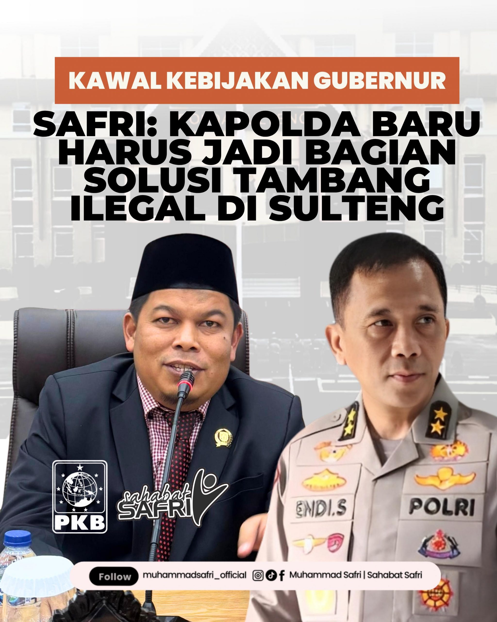 Safri lantas mempertanyakan keseriusan Kapolda Sulteng yang baru, Irjen Endi Sutendi terkait komitmen untuk bersinergi dan berkolaborasi dengan Pemerintah Provinsi Sulawesi Tengah dalam menciptakan iklim yang aman dan kondusif bagi masyarakat.
