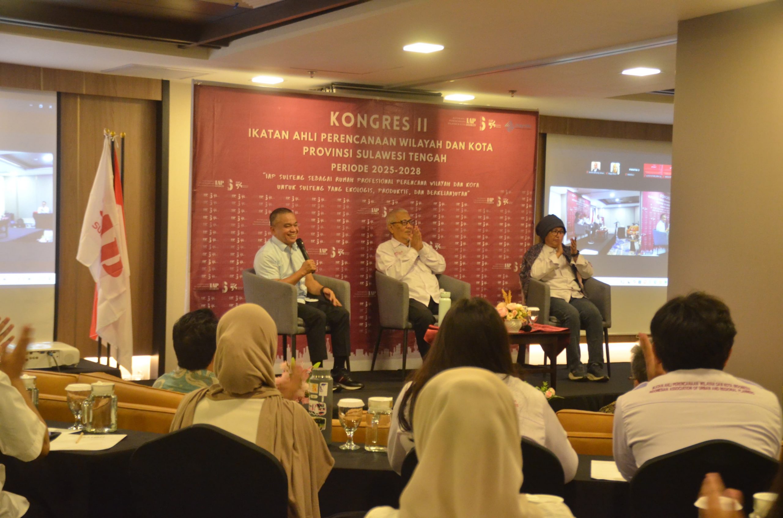 Dialog rangkaian Kongres II Ikatan Ahli Perencanaan Wilayah dan Kota Provinsi Sulawesi Tengah periode 2025–2028, yang mengusung tema “IAP Sulteng sebagai Rumah Profesional Perencanaan Wilayah dan Kota untuk Sulteng yang Ekologis, Produktif, dan Berkelanjutan.”