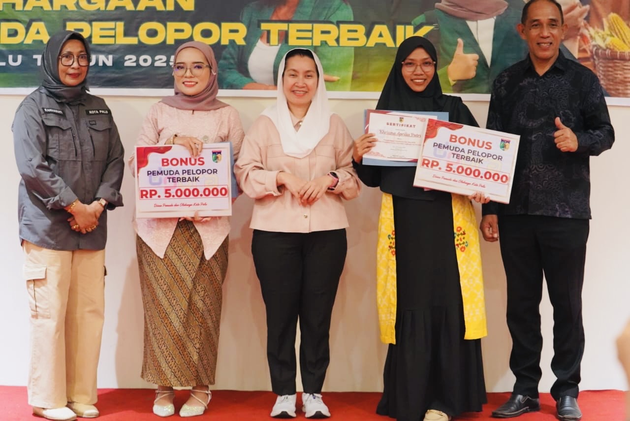 PALU – Wakil Wali Kota Palu, Imelda Liliana Muhidin, menyerahkan Penghargaan Pemuda Pelopor Terbaik Kota Palu Tahun 2025 (26/11/2025). Penyelenggara Dinas Pemuda dan Olahraga.