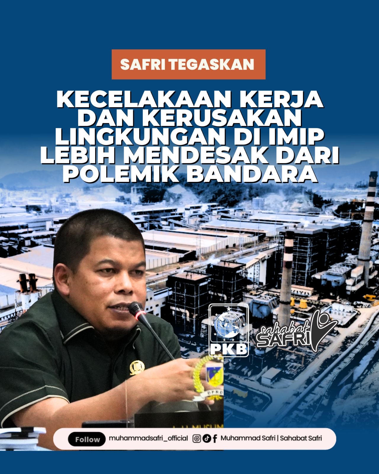 “Kita jangan terjebak pada isu baru yang membuat kita lupa pada luka lama. Polemik bandara ini jangan sampai membuat kita lupa atau mengalihkan perhatian dari rangkaian masalah struktural yang berulang di kawasan IMIP,” ujarnya.