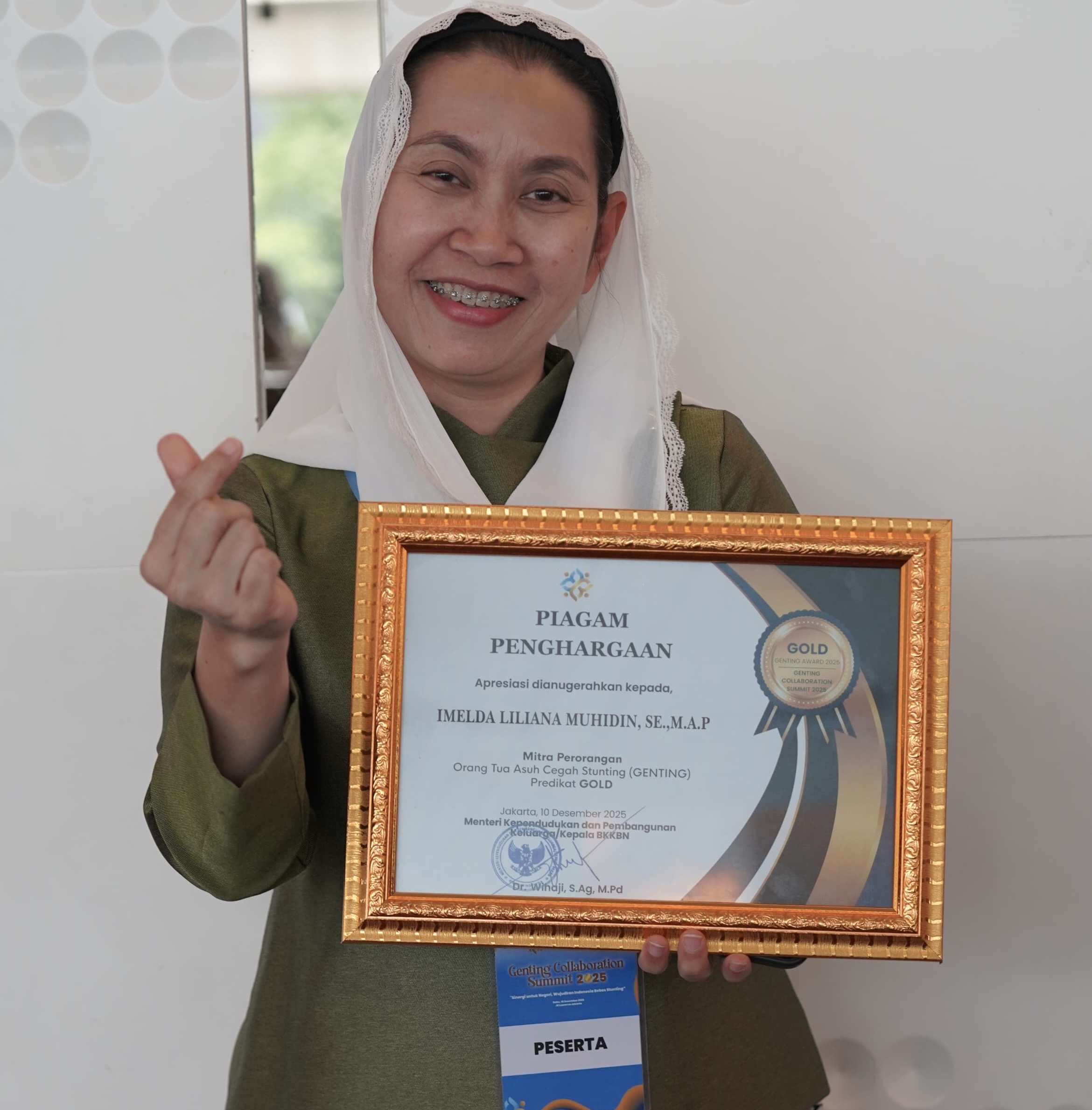 Penghargaan berlangsung pada Rabu (10/12/2025) di Jakarta saat kegiatan “GENTING Collaboration Summit 2025”. Penghargaan ini diberikan sebagai bentuk apresiasi atas komitmen dan kontribusi Wawali Imelda mendukung upaya percepatan penurunan stunting melalui program Orang Tua Asuh GENTING, termasuk dorongannya terhadap kolaborasi lintas sektor dan keterlibatan masyarakat.
