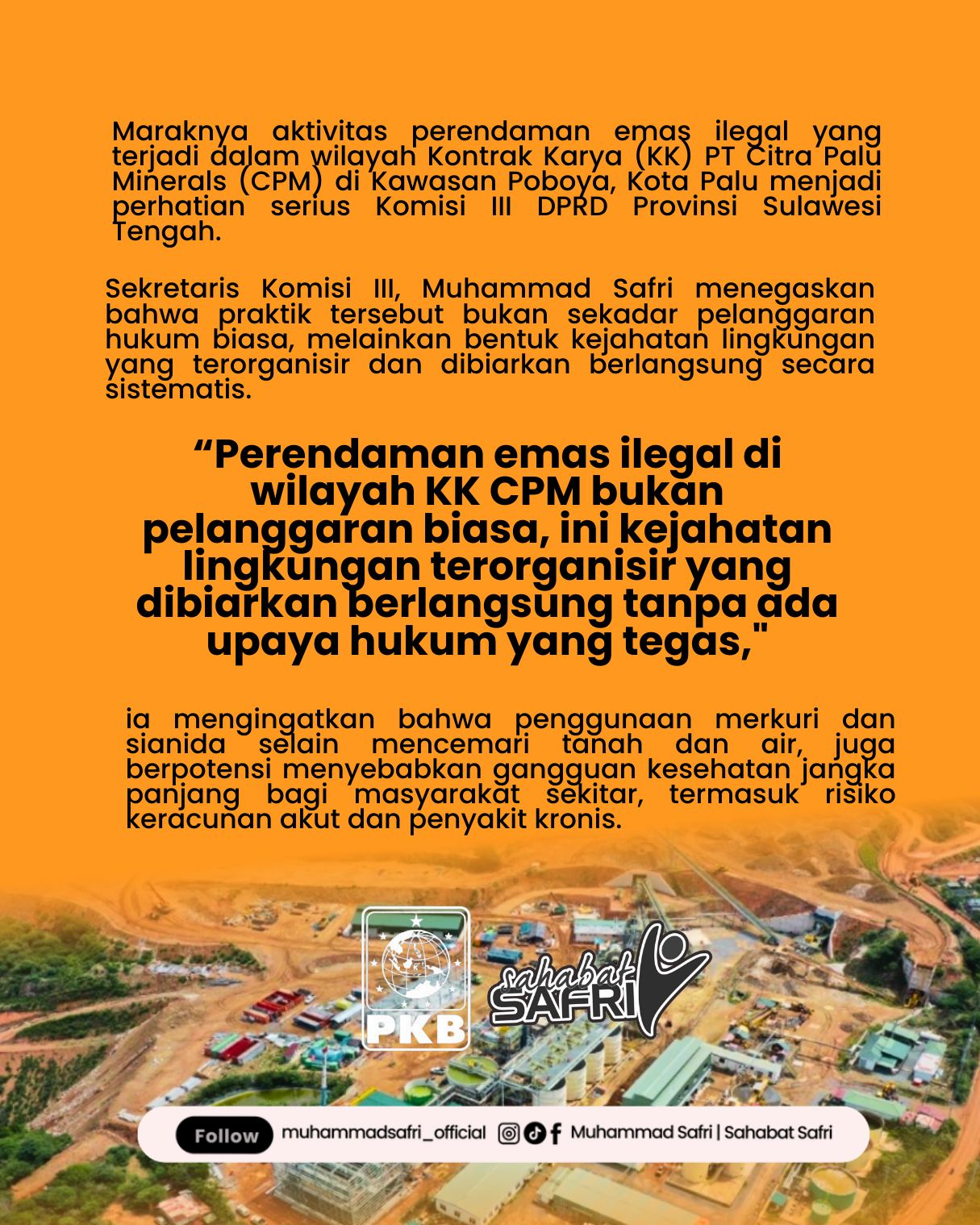 Safri mengusulkan agar seluruh pihak mengambil langkah tegas melakukan evaluasi menyeluruh terhadap izin PT CPM sebagai pemegang kontrak karya di wilayah tersebut.