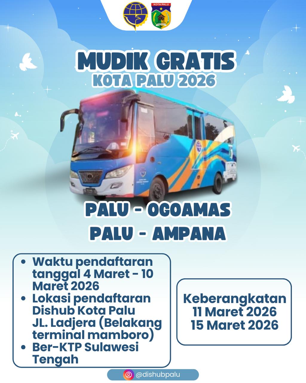 Mudik gratis ke Ampana, Surabaya, Balikpapan hingga Makassar. Jadwalnya dapat dilihat di flyer di bawah ini. Catat keberangkatan Mudik Gratis. Sebelum daftar online. ***