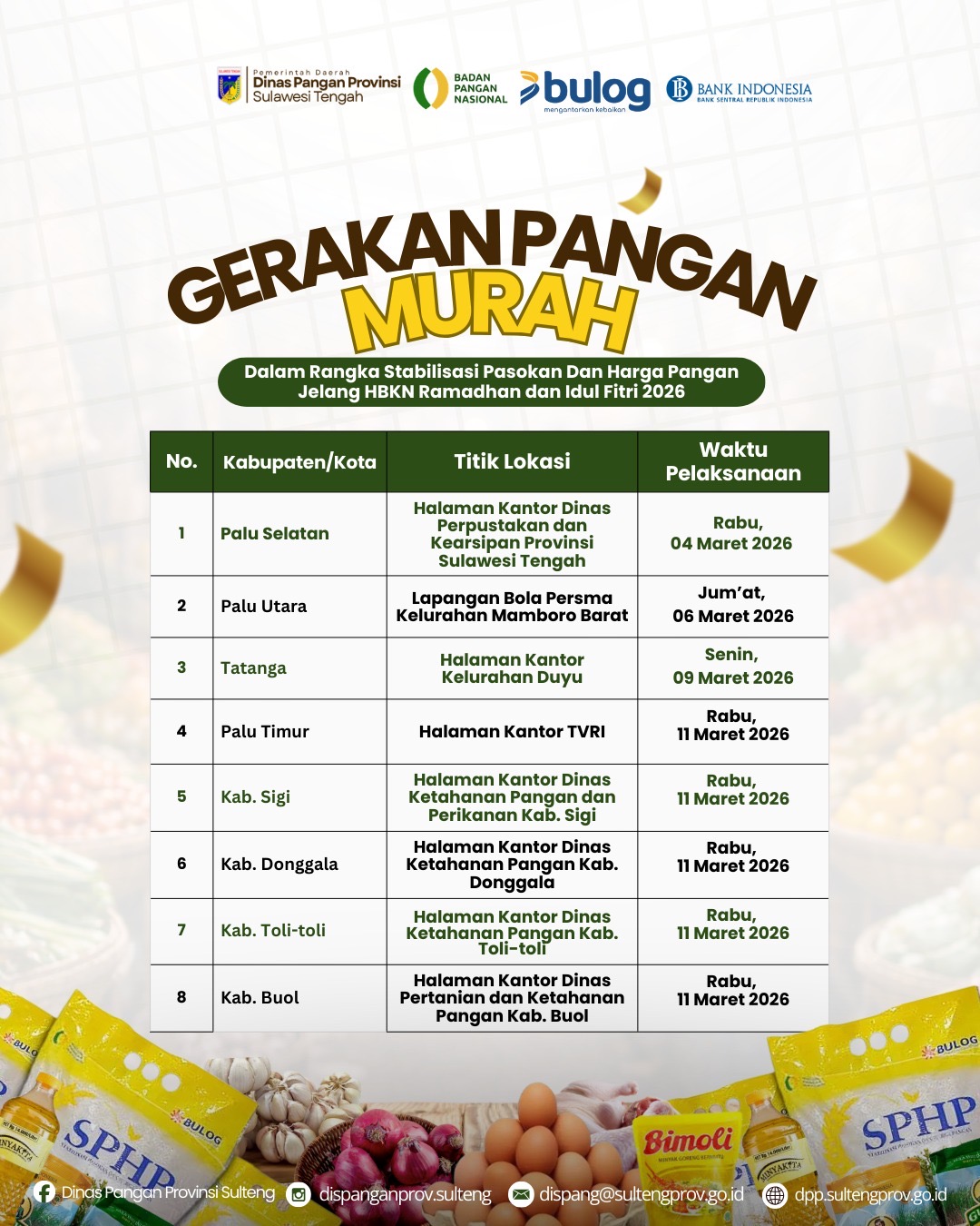 GPM adalah manifestasi dari kebijakan Pemprov yang menjadi perhatian Gubernur Anwar Hafid, kata Rohani. ‘’Arahan bapak gubernur untuk memastikan bahwa menjelang hari besar keagamaan ketersediaan pangan dengan efek domino menekan inflasi maka GPM akan menjangkau empat kabupaten dan satu kota,’’ terangnya Senin (2/3/2026) di Palu.