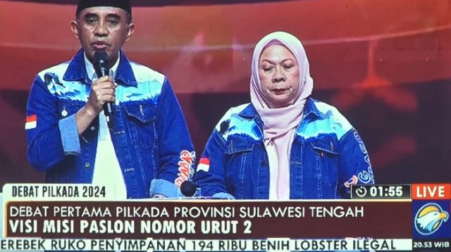 Gubernur Anwar Hafid dan Wakil Gubernur Reny A Lamadjido dalam sebuah acara debat publik Pilgub 2024 lalu.